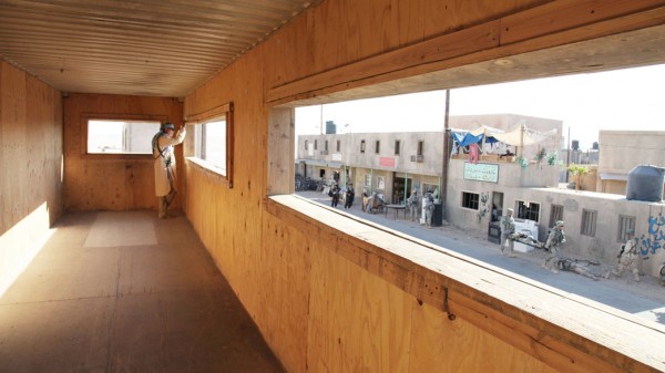 This training facility is an optical device. It is used not only to train soldiers for combat, but also as a device to guide their gaze. It familiarizes them with the "reality" of Iraq, as it is fictionalized by the army and Hollywood. Soldiers are trained to recognize the enemy, to differentiate the "good people" from the terrorists and taught that every Iraqi is a potential enemy. It is also used as a narrative tool to produce a war utopia, through operations of framing and the training of the viewer via the media which are welcome to cover the activities of the facility.