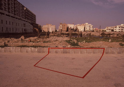 Appearing as a crime scene Mirza and Butler’s tape draw evokes either the destruction of a building that was on that site, or the possibility of an absence of building. It problematizes the framing of an architectural site, exhibiting architecture through its absence at full scale, and outside the frame of the gallery. The drawing is jointly held by the Museum of Non Participation and ASAP. As a hybrid object, part art, part architecture, part image, part object, it again stands as emblematic of new types of way of exhibiting architecture as part of an expanded spatial environment within transnational cultures.